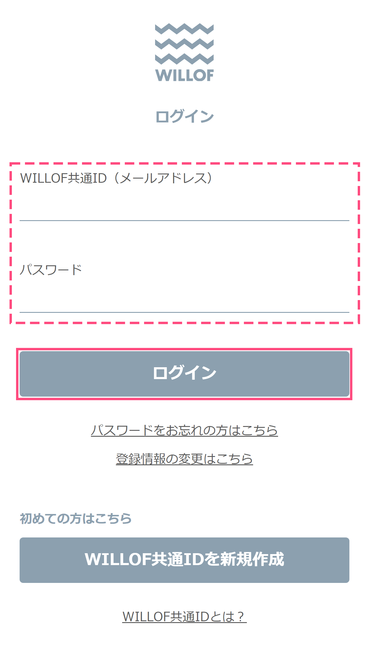 https://mypage.willof.jp/work/TopMiloginログイン方法